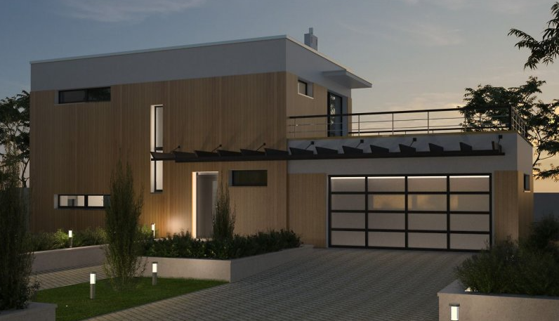 Проект "КЗБ - 2291" - хороший двухэтажный дом для постоянного проживания из керамзитоблоков с террасой, с гаражом. Площадь гаража 233.75 м2 с размерами 9 на 17.